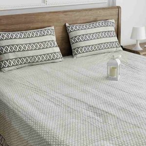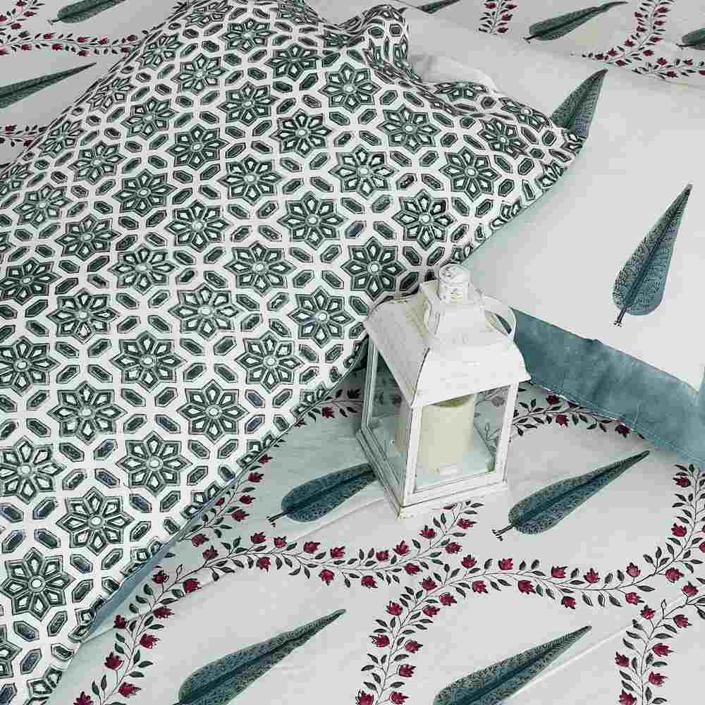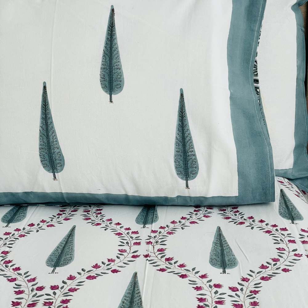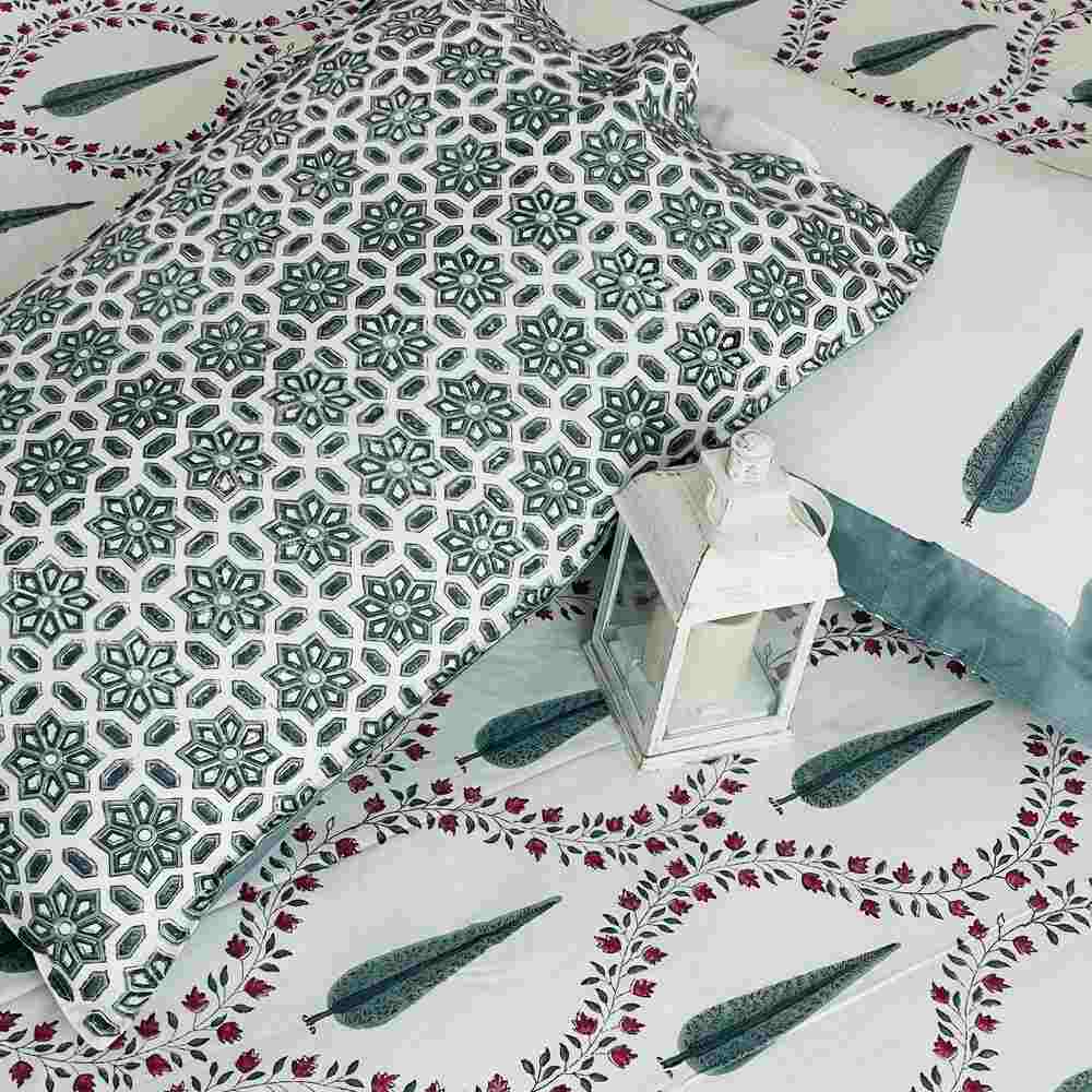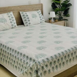 Affordable Handblock 260 TC 100% cotton flat kingsize bedsheet with 2 pillow covers, Handcrafted by Indian master artisans, Made with pure cotton,Size king 108*108* INCHES flat sheets. Pillow covers 18*28 INCHES.