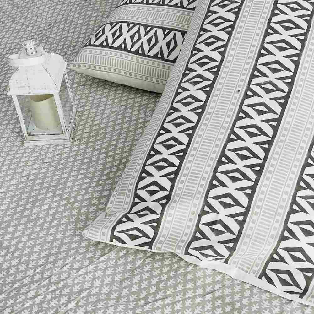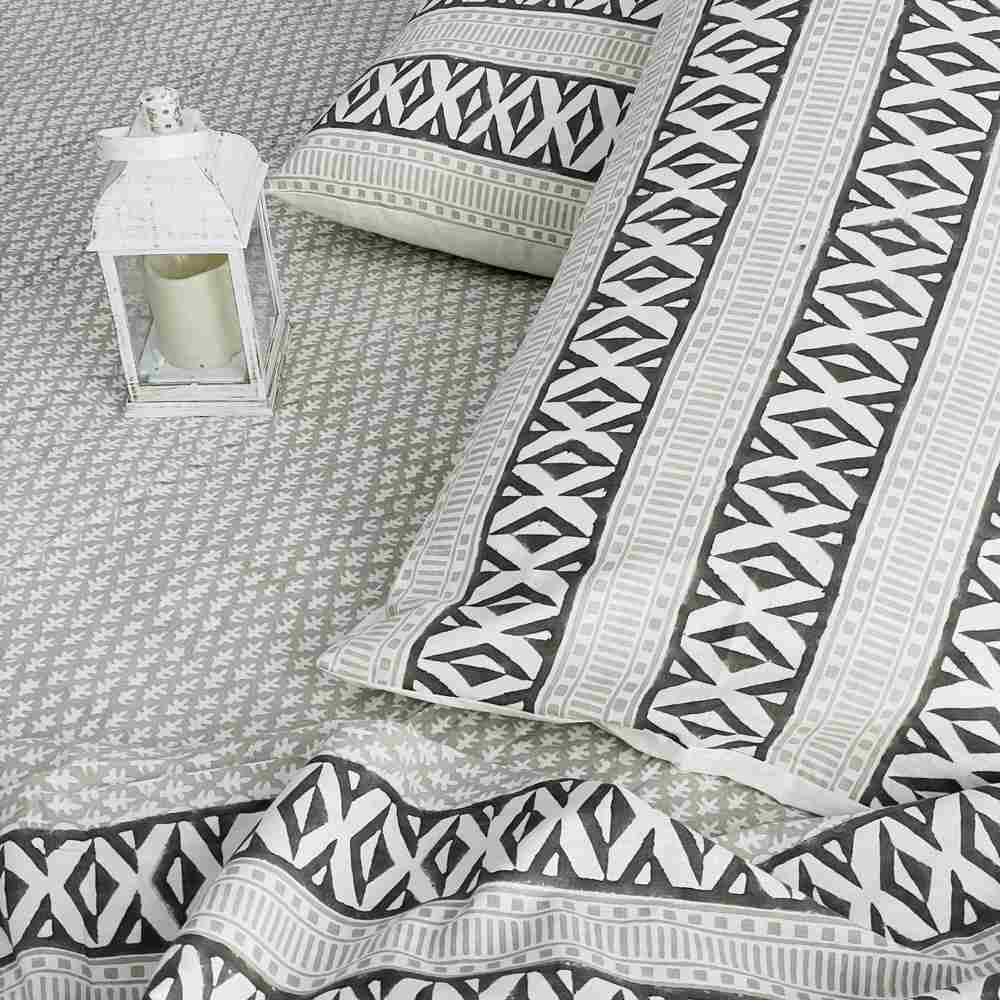 Premium Handblock flat kingsize bedsheet with 2 pillow covers, 400 TC 100% cotton