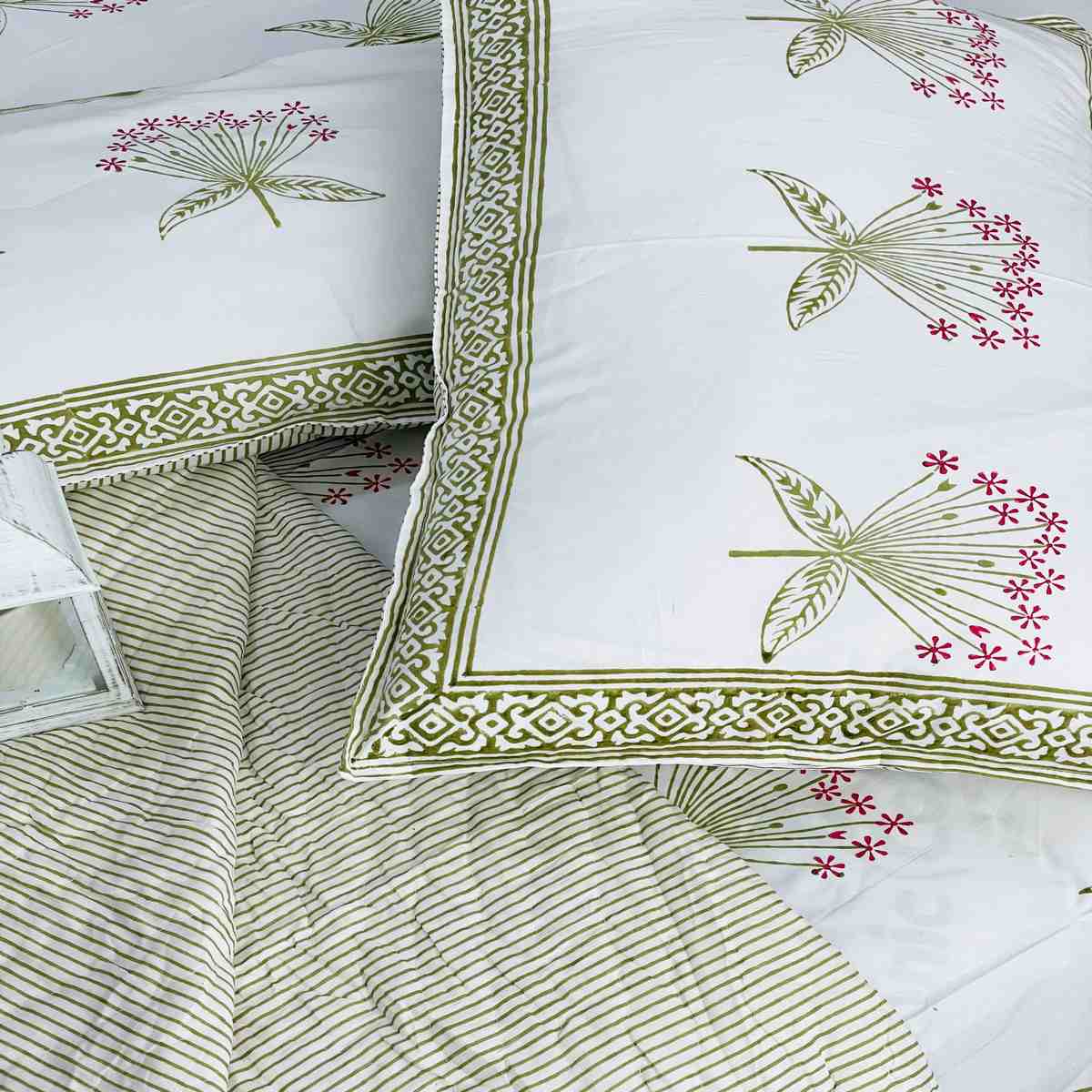 Premium Handblock Comforter set,Soft muslin cloth with surgical cotton filling comforter. Premium Handblock 400 TC 100% cotton flat Standard kingsize bedsheet with 2 pillow covers, Handcrafted by Indian master artisans, Made with super soft percale cotton, Size Standard king 90*108* INCHES flat sheets. Pillow covers 18*28 INCHES.