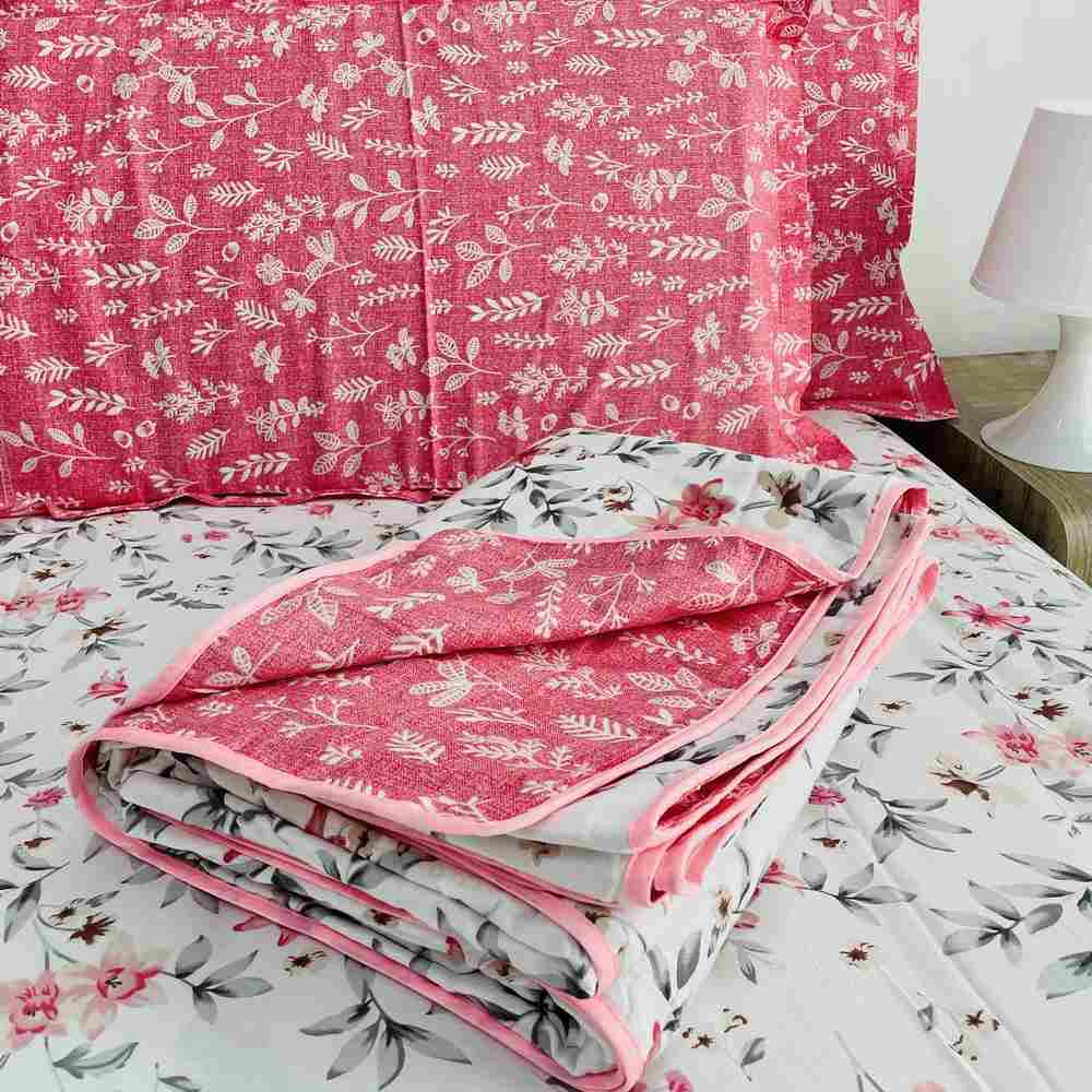 Premium Pure Cotton 400 TC 100% cotton flat King size bedsheet with reversible Dohar, Made with super soft cotton fabric, Size: King 108*108* INCHES flat sheets,2 Pillow covers 18*28 INCHES, ,Soft PureCotton Reversible Dohar with a flanel layer inside 108*108 INCHES