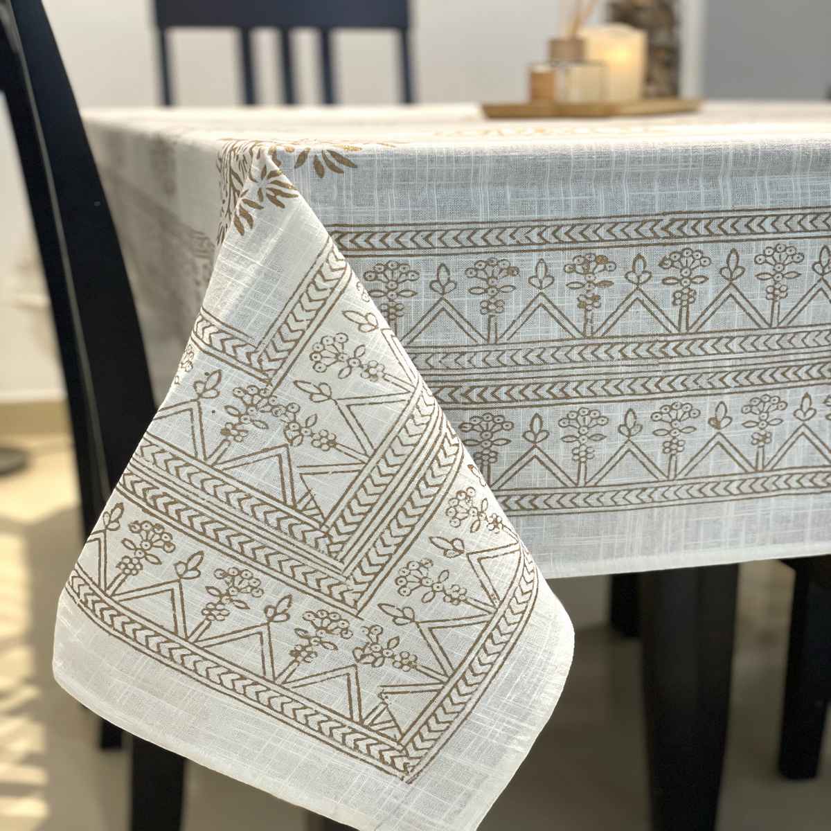 Premium Handblock Textured Cotton table cloth .Handcrafted with Indian master artisans.Size available 6 seater