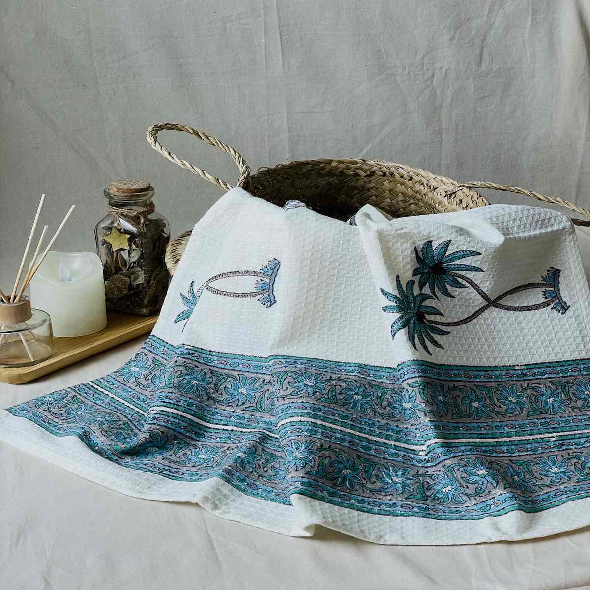 Premium Handblock crafted with Waffle cotton Adult Bath Towels.They are lightweight,fast drying,soft and compact.