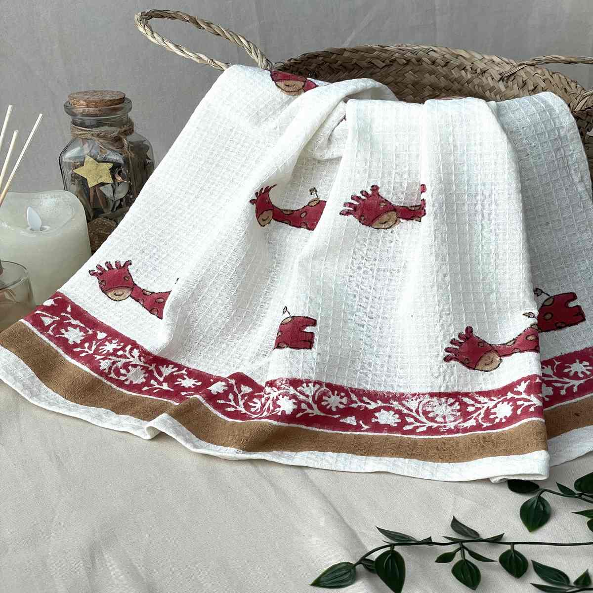Premium Handblock crafted with Waffle cotton Kids Bath Towels.They are lightweight,fast drying,soft and compact.